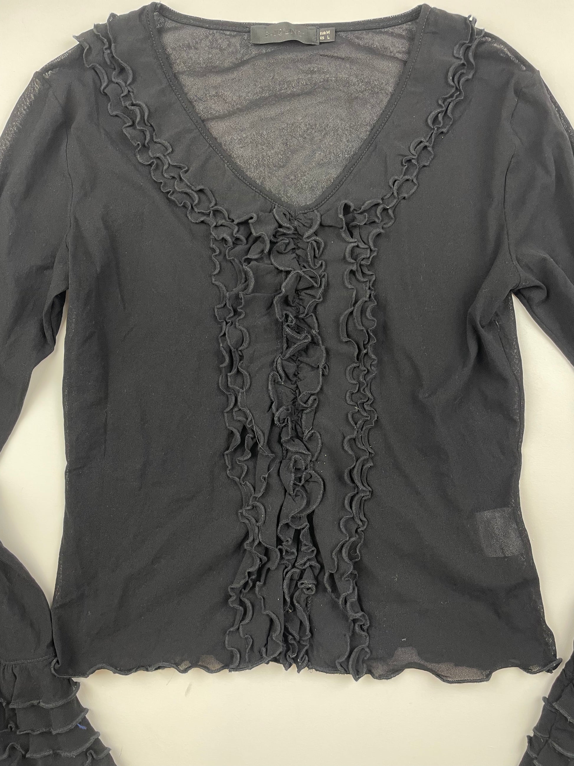Black Ruffle Mesh Top